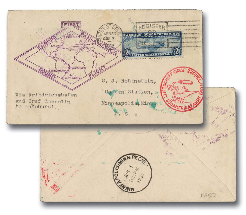 Just as prized as the stamps themselves are covers actually flown aboard the airship. These envelopes and postcards were franked with Zeppelin issues, carried on specific flights, and marked with special cachets or handstamps. Each piece connects directly to a documented voyage of the Graf Zeppelin, making them highly collectible. From transatlantic mail to special event flights, Zeppelin covers allow collectors to trace the routes of one of aviation’s most legendary craft.