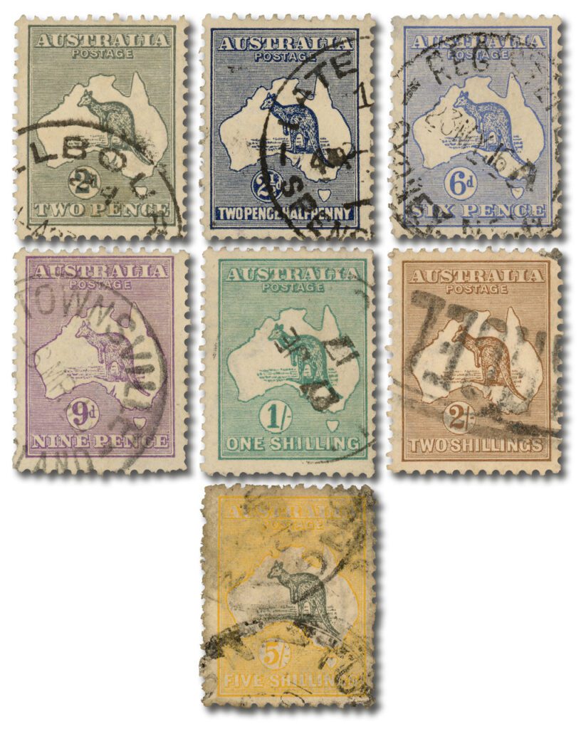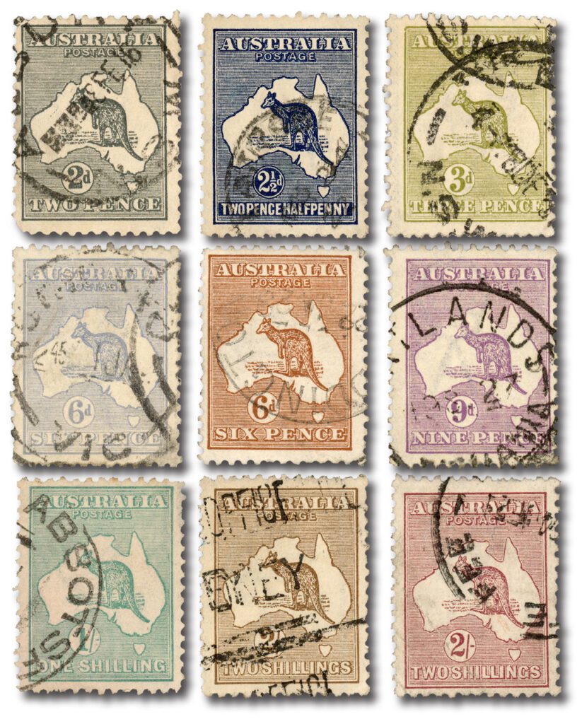 The Kangaroo and Map stamps stayed in use for decades, coming out in several different printings. At a glance they all look the same, but you can tell them apart by checking the watermark in the paper. That little detail is the key to knowing which issue you’ve got…