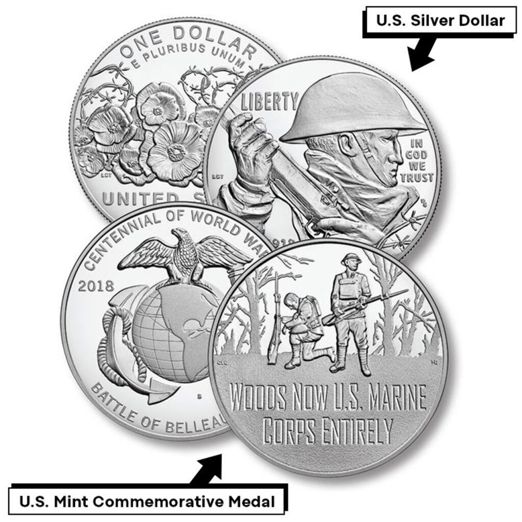 #CNSE8 – 2018 Centennial of World War I Silver Dollar & Marine Corps Medal Set