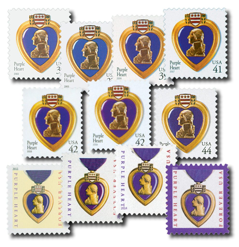 US #3784/5419 – 2003-19 Purple Heart Stamps, Complete Set of 11