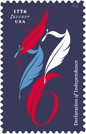 As the nation marks the 250th anniversary of the Declaration of Independence, the Postal Service pays tribute to the document that gave voice to America’s founding ideals. Designed and created by Juan Carlos Pagan, the stamp art features a typographic treatment of “1776,” the year the declaration was adopted. Each numeral takes the shape of a feather quill pen, a nod to the instruments used to sign the nation’s founding document. Pagan worked under the direction of Greg Breeding, an art director for USPS.