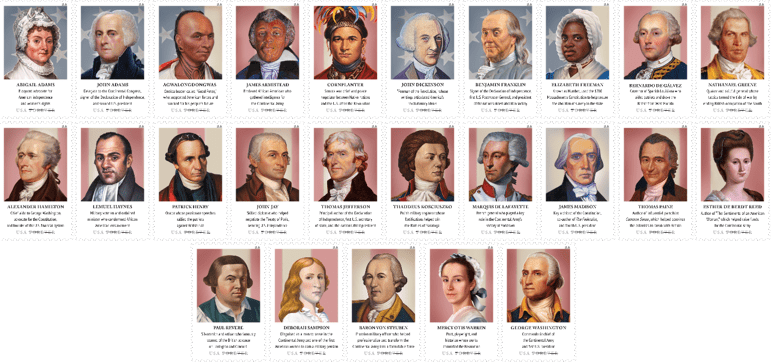 Commemorating the 250th anniversary of the United States, this pane pays tribute to 25 individuals whose ideas, leadership, and sacrifices were vital to achieving American independence and shaping the new nation. Representing a range of roles and perspectives, from political thinkers and military leaders to writers, diplomats, and everyday citizens, the honorees reflect the collective effort that defined the Revolution. Ethel Kessler, an art director for USPS, designed the pane, which features original artwork by 13 contemporary artists.