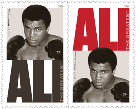 Known as “The Greatest,” Muhammad Ali (1942-2016) was a three-time world heavyweight boxing champion. He challenged the best fighters in the world — and the world itself. As a boxer, activist, and humanitarian, he defied expectations to become a globally celebrated cultural icon. The stamps feature a 1974 Associated Press photo. The name “ALI,” alternating top to bottom, suggests aspects of his career: promotional posters, his legendary movement in the ring, and the chants that greeted him when he traveled the world. Antonio Alcalá, an art director for USPS, designed the stamps. The Muhammad Ali stamps will be issued Jan. 15 in Louisville, KY.