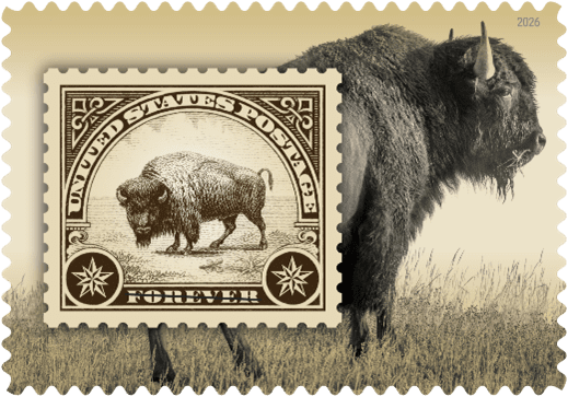 The buffalo’s epic story has played an enduring role in shaping America’s identity. Honoring our national mammal while saluting historic philately, this unique stamp features a contemporary photograph of a bison inset with artwork evoking a 1923 stamp issued when the species was beginning to rebound from near extinction. Greg Breeding, an art director for USPS, designed the stamp using Tom Murphy’s existing photograph and artwork from the century-old stamp.